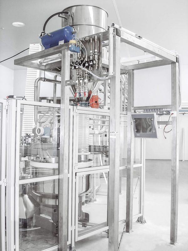 Zentrale Behälterwaage: Mehl, Zucker und alle Zutaten aus dem Compo, wie Dextrose und Backmittel, werden rezeptgesteuert und automatisch in die Waage gefördert.