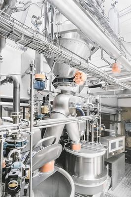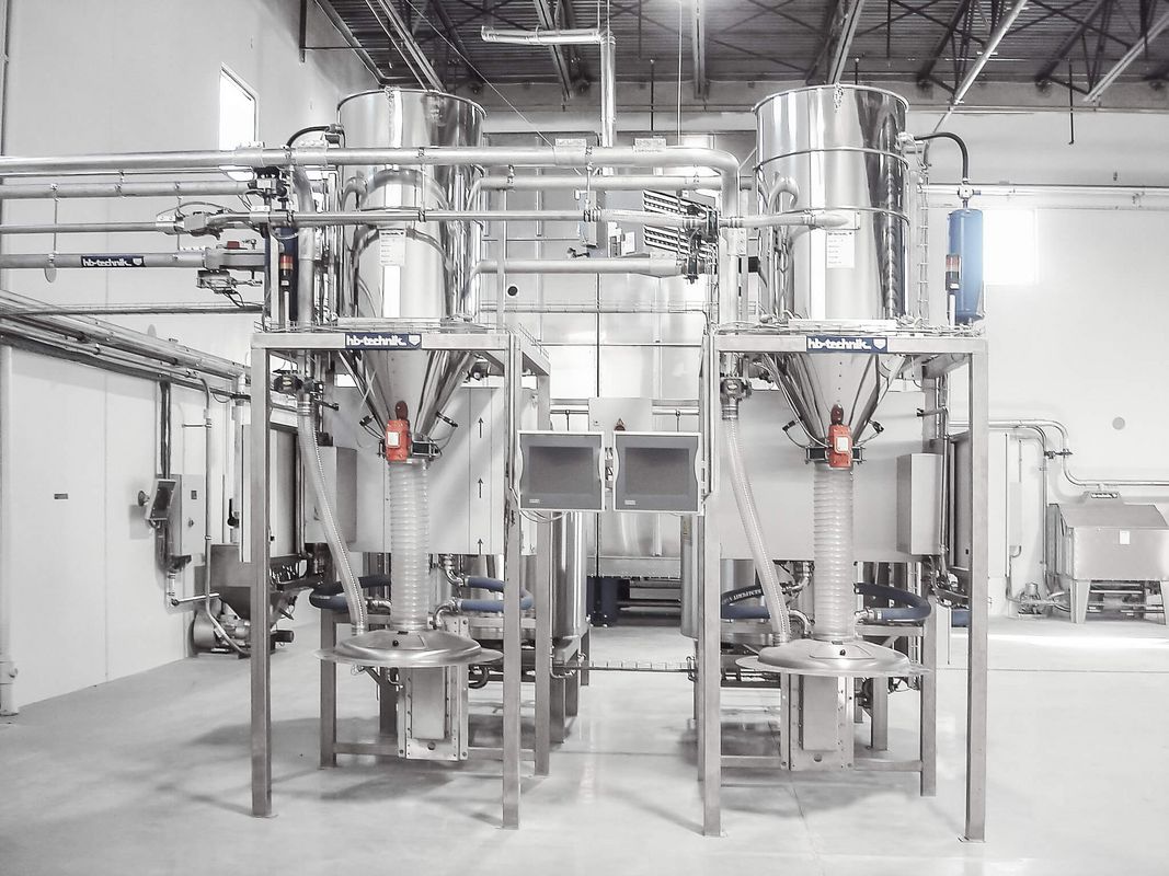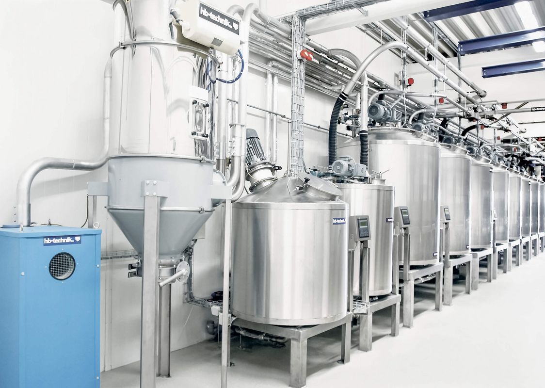 Dust removal: Central dust aspiration systems with jet filters remove the dust from the suction points over the kneaders at the target points. Likewise the bag dump stations, big bag station and the predough machines, as well as the ingredient machines are connected to the dust exhaustion system by piping.