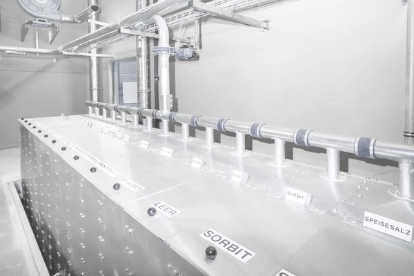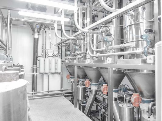 Liquid metering: Water mixing and metering equipments for hot, cold and chilled water are assigned to the target points for bread, biscuit and organic lines. Another device facilitates the automatic water feeding of the predough machines as well as the automatic cleaning with hot water. Rye- and wheat predough and cold- and hot-soaked grains are dosed to the kneading target points. Oil and yeast are likewise automatically dosed to the above-listed kneading target points.