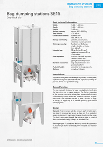 The raw materials delivered in bags are depleted directly into the bag dump on a coarse presieve. The further conveying of the storage commodity takes place pneumatically through a blow-through rotary valve and blower in vacuum- or pressure mode. The extraction can be in plain-, double- or tripple design, to supply up to 3 parallel operating pneumatical conveying lines.