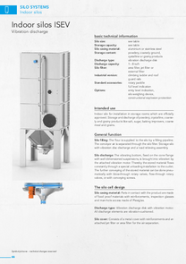 Indoor silo for installation in storage rooms which are officially approved. Storage and discharge of powdery, crystalline, coarsely and grainy products like salt, sugar, baking improvers, coarse meal and grains.