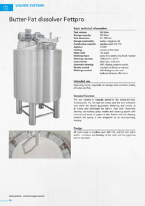 Der Rohstoff wird in den temperierten Behälter gegeben. Anschließend wird der Deckel geschlossen und es beginnt automatisch der Auflöse-Rühr-Vorgang. Verwiegung und Kontrolle aller Zugänge und Entnahmen erfolgt über eingebaute Messzellen. Automatische Reinigung durch rotierende Sprühköpfe mit Heißwasser und Reinigungsmittel, auch alle Leitungen werden gespült. Die Rohrleitung ist ebenfalls temperiert durch eine Rohrbegleitheizung.