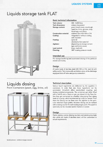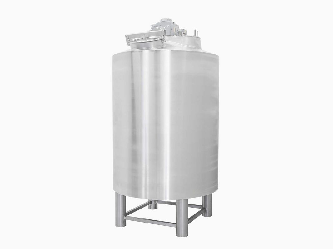 Produktberührende Teile in Edelstahl AISI 304 oder 316. Tankdom mit Sicherheitsschalter, Entlüftungsventil, Absperrorgan am Auslauf, Pumpenanschluss.