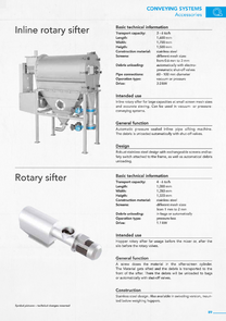 Stabile Edelstahl-Konstruktion mit auswechselbaren Siebtrommeln, Sicherheitsschalter, Gestell und automatischer Unratabscheidung.