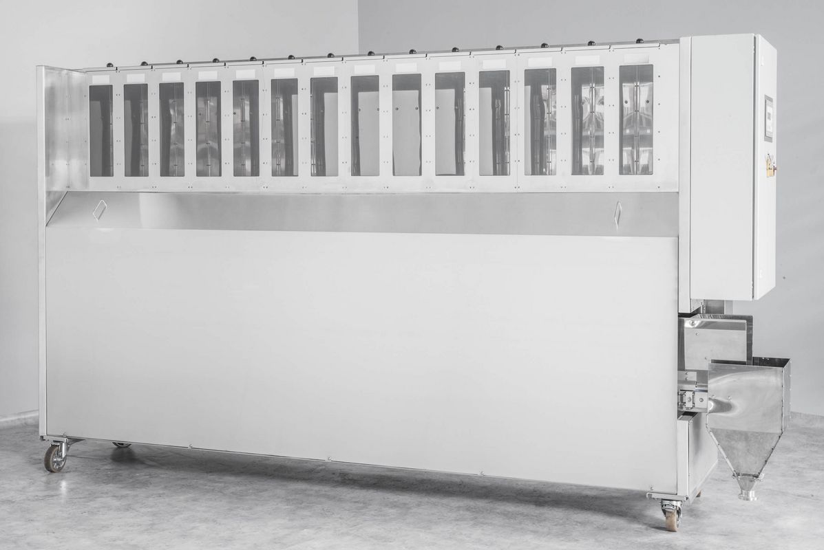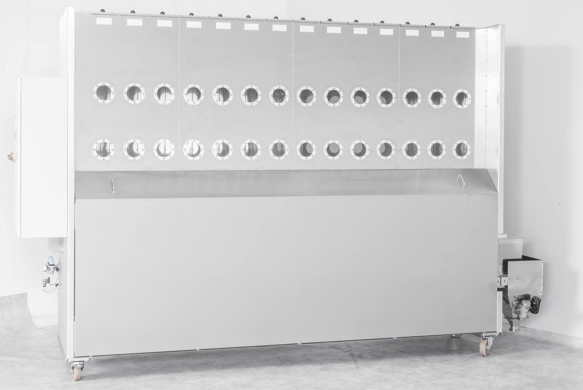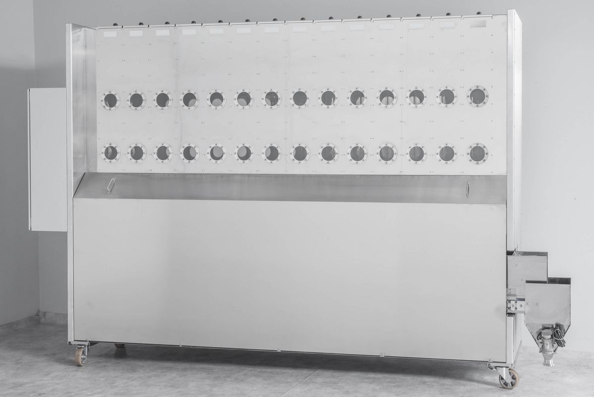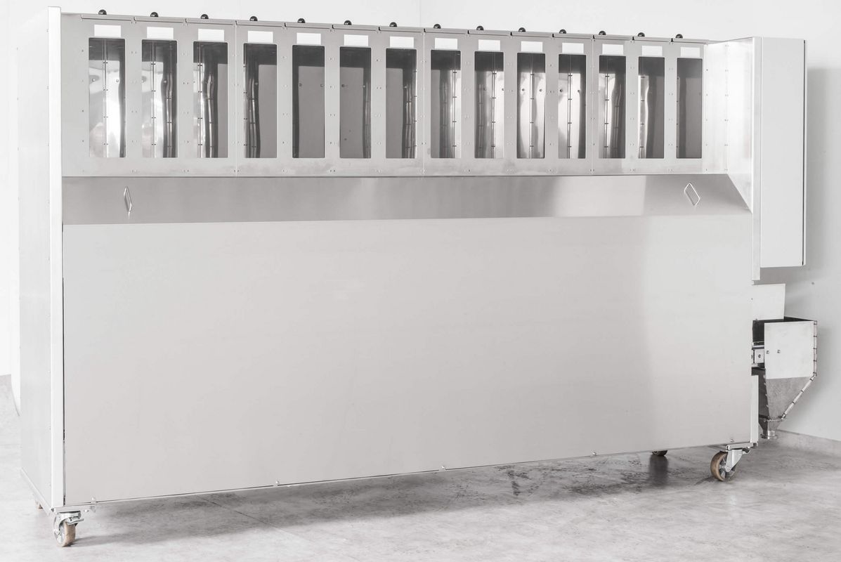 AUTOMATISCHE ZUTATENDOSIERUNG und Verwiegung mehrerer Komponenten wie staubförmige, geschrotete, kristalline, körnige Produkte wie Salz, Zucker, Backhilfsmittel, Gewürze mit Rezeptcomputer. Die Behälter werden manuell mit Sackware befüllt. Der Zutatenautomat dosiert und verwiegt die Zutaten laut Rezept auf wenige Gramm genau und liefert diese gesammelt in einen Behälter oder sendet die Charge automatisch zu einer Abnahmestelle.