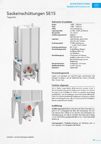 Die in Säcken angelieferten Rohmaterialien werden direkt in die Sackeinschüttung auf ein Grobvorsieb entleert. Eine sichere Austragung des Produktes ist durch die spezielle Austragung gewährleistet. Die Staubabsaugung wird bei Deckelöffnung aktiviert. Der Weitertransport des Lagergutes erfolgt pneumatisch über Durchblaseschleusen. Bis zu 3 pneumatische Förderlinien können angeschlossen werden.